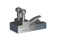 精密小型クランプ ?メジャーリングクリップは三次元測定器、投影機、画像測定器、顕微鏡等の測定作業において、測定物をテーブル上に保持する小型のクランプです。?丸棒などの異形物や小さい精密製品等は口金部のV溝により、容易に保持出来ます。?クリップ式のレバーで簡単にクランプでき、保持力の強弱はバネ部の操作にて調節可能です。